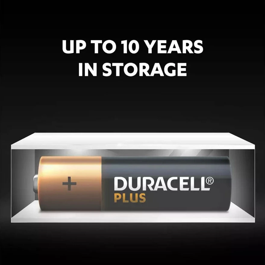 Duracell Plus AA has up to 100% extra life longevity performance compared to the Minimum Average Duration of the 2015 IEC AA Digital Camera test. Results may vary by device or usage pattern (IEC’s website. Unused Duracell batteries can stay powered up to 10 years in ambient storage. These batteries are Duracell’s recommendation for everyday devices, such as digital cameras, photoflash, toys or boomboxes, and of course are great fit for the regularly used devices as flashlights, portable game controllers, shavers, toothbrushes and any other.