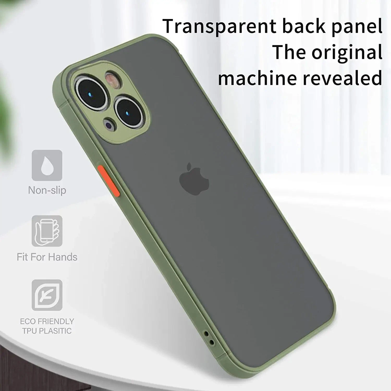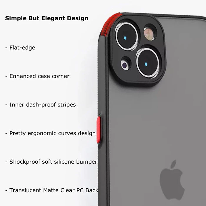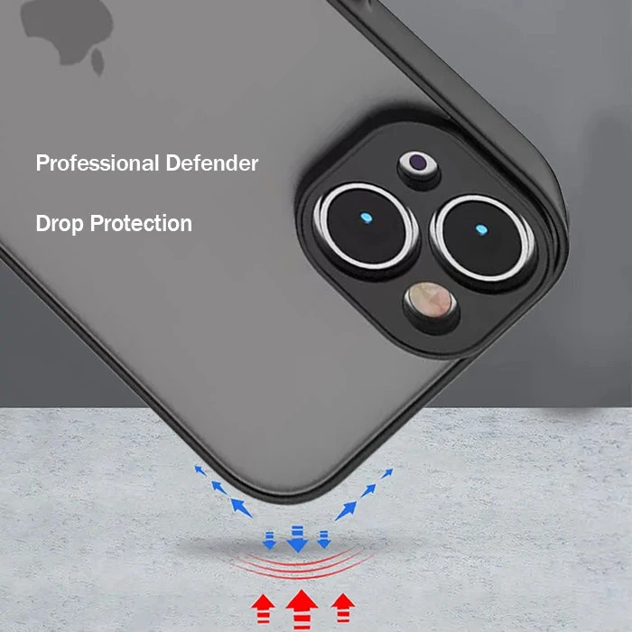 The shock-absorbing frame is made of TPU material with strong flexibility. The back cover of the protective shell is composed of a hard translucent matte/frosted PC (polycarbonate) material.