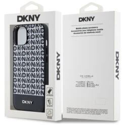 DKNY Repeat Pattern Bottom Stripe Cover for iPhone 15 – MagSafe Compatible