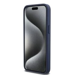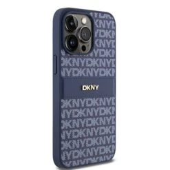 DKNY PU Leather Textured Tonal Stripe Magsafe Rear Case For IPhone 15 Pro Max – Blue