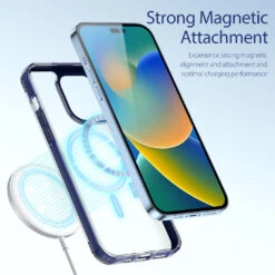 This crystal clear case with colored edge for iPhone 14 series completely supports MagSafe wireless charging.