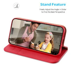 DUX DUCIS Genuine Leather Flip RFID Wallet Case For Apple IPhone 14 Pro – Red