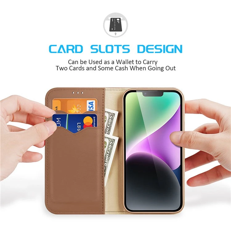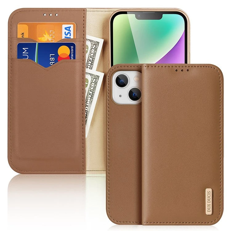 DUX DUCIS Genuine Real Leather Flip RFID Wallet Case For Apple IPhone 15 Plus – Brown