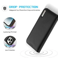 DUX DUCIS Genuine Real Leather Flip RFID Wallet Case For Apple IPhone 15 Pro – Black