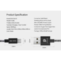 1 x Dux Ducis USB Cable K-ONE MICRO USB 50cm