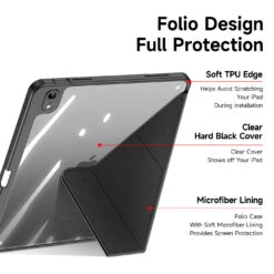Protects your tablet against scratches, dirty, oil and shock. Buttons and earphone ports remain easily accessible, has special holder and hole for holding the Apple Pencil.