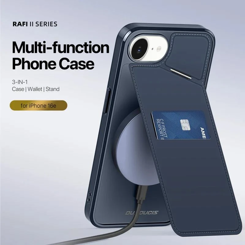 DUX DUCIS Rafi II Magnetic Case W/ Kickstand And Card Slots For Apple IPhone 16e – Blue