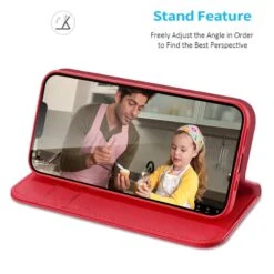 DUX DUCIS Real Leather Flip RFID Wallet Case For Apple IPhone 16e – Red