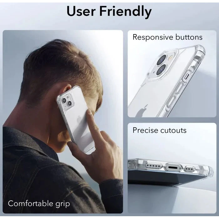 ESR Air Armor one-piece case, consisting of rigid, transparent backpacks and a flexible frame around, made of thermoplastic, soft material, which further protects the device from damage.