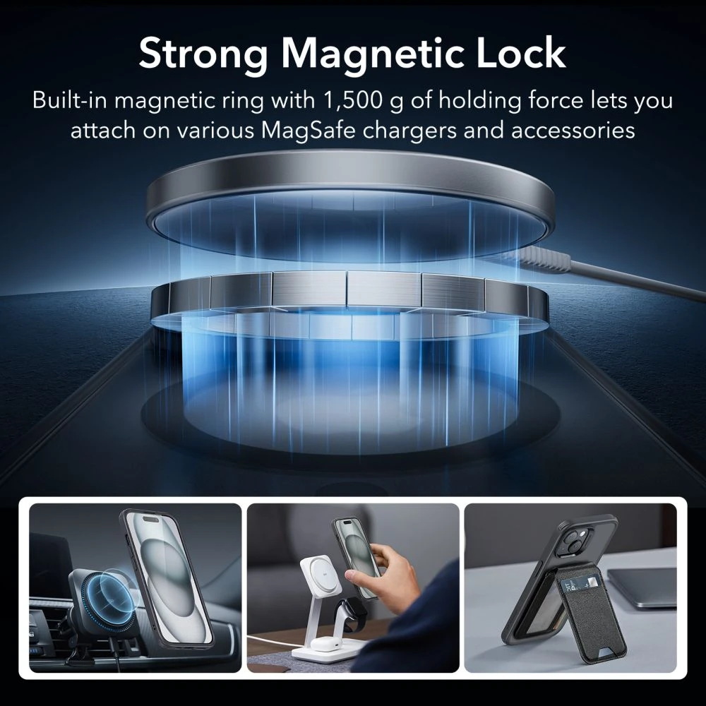 HaloLockย is equipped with a ring compatible with MagSafe wireless technology.