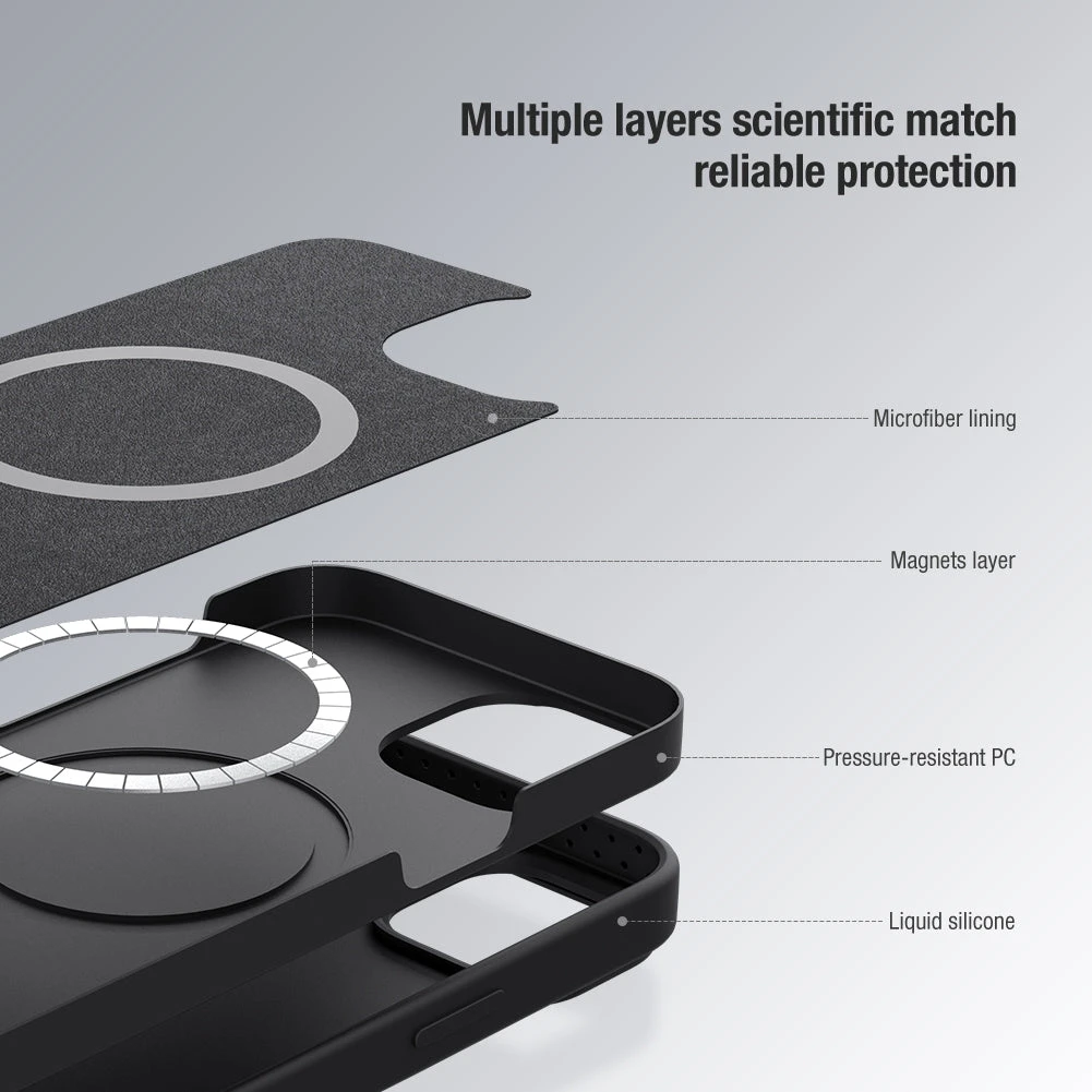 Constructed from multiple layers for a scientific match and reliable protection. Made from a soft microfiber lining, then the magnetic ring made up of 38 magnets. Outside this is a pressure-resistant polycarbonate (rigid plastic) which adds strength and rigidity. Lastly the liquid silicone outer, which feel soft and silky in the hand and adds some bump absorption.