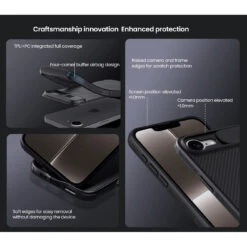 Sliding Camera Cover to protect the main rear camera of your phone from scratches and everyday knocks and bumps. Additional, the case has a 0.2mm lifted bezel for camera protection.