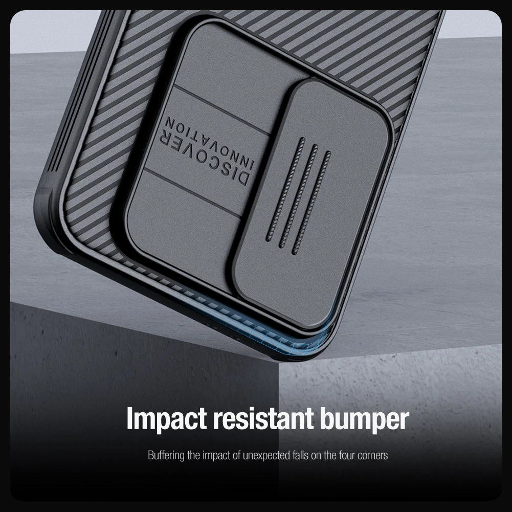 Sliding Camera Cover to protect the main rear camera of your phone from scratches and everyday knocks and bumps. Additional, the case has a 0.2mm lifted bezel for camera protection.