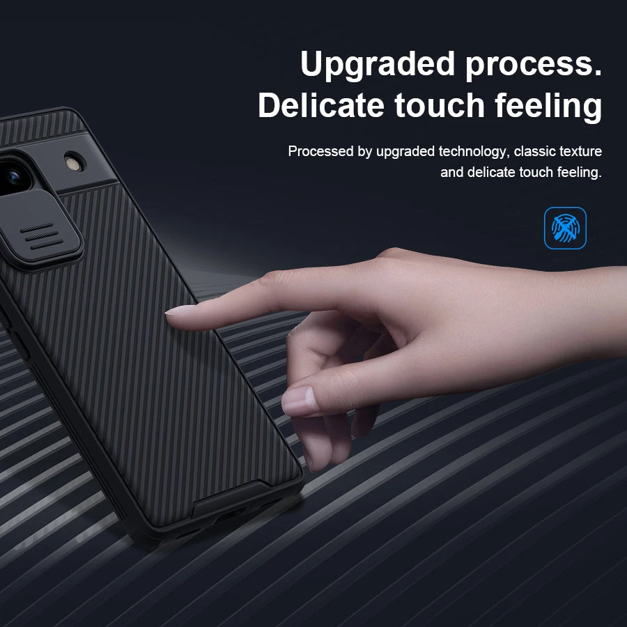 Sliding Camera Cover to protect the main rear camera of your phone from scratches and everyday knocks and bumps. Additional, the case has a 0.2mm lifted bezel for camera protection.