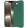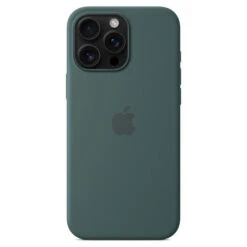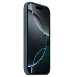 The protective cover for the cell phone features a silicone construction that provides drop and scratch protection. This back cover is designed with built-in magnets that ensure a secure fit, allowing for compatibility with MagSafe charging systems. The soft-touch finish adds a tactile advantage, enhancing grip. Lined with soft microfiber, it offers additional protection to the device while being environmentally friendly, as it is made of 55% recycled silicone. This case showcases functionality and reflects a commitment to sustainable materials.