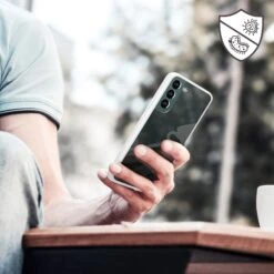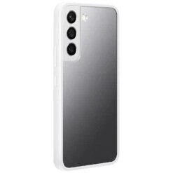 Original case from the Frame Cover series for Galaxy S22. 2 interchangeable plates to change the style: transparent and tinted black mirror effect. Rigid frame. Raised edges. Antimicrobial. IQ compatible. Accessible features.