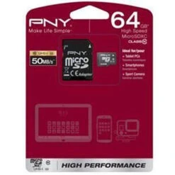 Your PNY 64GB SD Card + Adapter Class 10 UHS-I 50MB/s comes with a storage capacity of 64GB so that you can store as many images and videos as you or any other data that is important for you. Your PNY 64GB SD Card + Adapter Class 10 UHS-I 50MB/s is a high performance memory card that is fit to be used in the latest smartphones, tablets, e-books, for music and movies.
