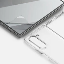 Crystal clear Ringke Dual Easy protective film covering the entire surface of the screen. It is made of high-quality urethane polycarbonate and has a scratch resistance of 3H, which effectively protects the screen from damage. The film perfectly reflects the displayed colors and has a special anti-grease coating that protects the screen from leaving fingerprints.