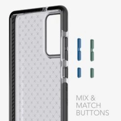 Three sets of responsive, interchangeable and easy-to-press buttons will help mix up the color of your case