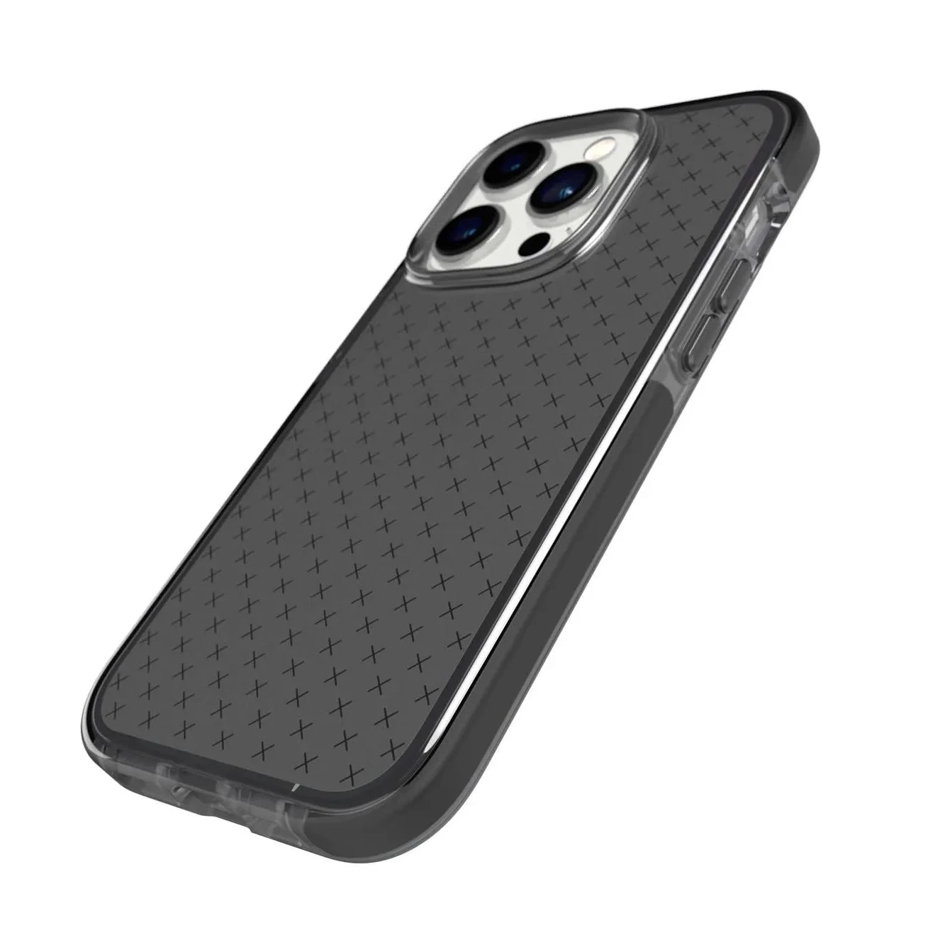 Protect your iPhone 14 Pro with a smokey black Evo Check โ One of our most popular soft cases, made with our most protective FlexShockโข impact material. The case for the person who wants a perfect mix of protection and subtle self-expression.